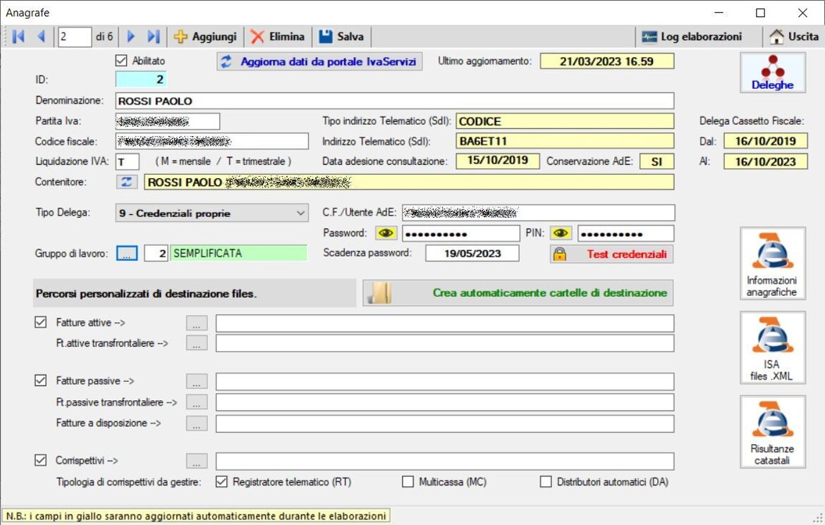 Elaborazione massiva per le anagrafiche selezionate o tasto rapido di elaborazione della singola anagrafica