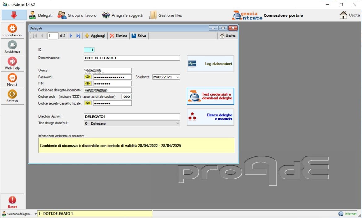 Per ogni delegato è possibile salvare in sicurezza le credenziali e specificarne la tipologia