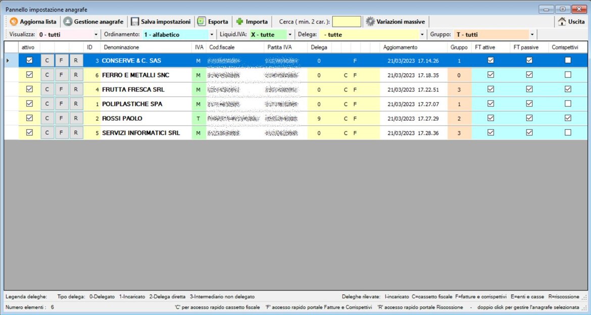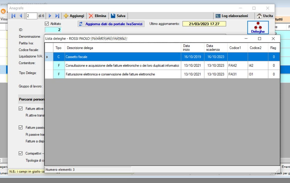 Possibilità di gestire un numero illimitato di anagrafiche clienti dello studio con o senza delega