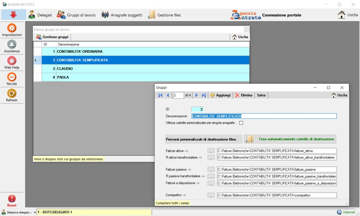 Possibilità di gestire un numero illimitato di delegati ( professionisti/studi associati/società di servizi/C.E.D. )