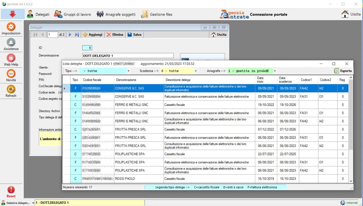 Elenco deleghe consultabile e filtrabile per tipologia e anagrafe ( gestita o meno su proAdE )